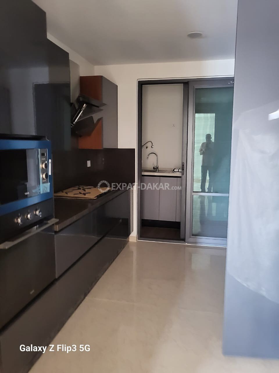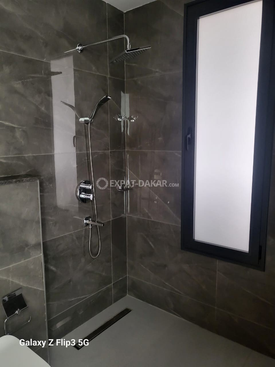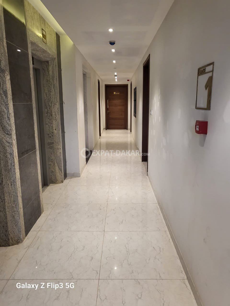 Appartement grand standing 5eme étage, entièrement climatisé avec toutes les commodités (piscine, sécurité, ascenseur…) comprenant 3 chambres avec sdb, salon, cuisine équipée, toilettes visiteurs, dépendances, 1 parking SS. NB: Loyer HT